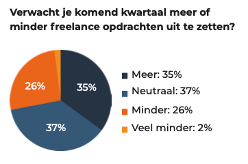 De bredere freelancemarkt toont herstel: de marktindex stijgt in Q4 naar 100 punten, het hoogste niveau in anderhalf jaar. Dat betekent dat positieve en negatieve signalen in evenwicht zijn. Opdrachtgevers verwachten meer groei (35%) en vinden makkelijker freelancers (61%), maar de onzekerheid over wetgeving blijft een rem op lange contracten.