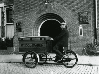 “Toen ik negen jaar was, kon je eenmaal in de week op school een spaarzegel van 10 of 25 cent kopen” zegt de 77-jarige Dirk van der Plasse uit Purmerend. “Dit was het zogenaamde schoolsparen. Die zegel plakte je op een kaart. Was de kaart vol dan ging je ermee naar de bank hier in de buurt. Die stortte de waarde van de kaart plus een extraatje op je spaarrekening. Zo heb ik sparen geleerd.”