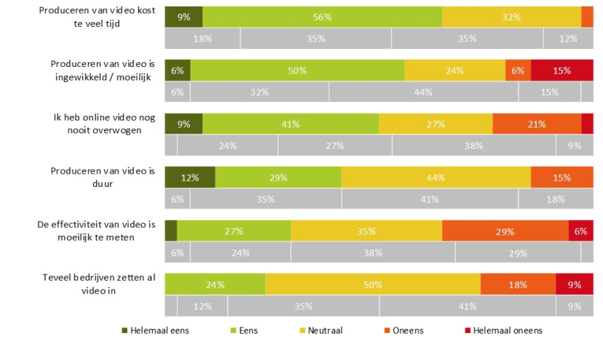De OVM 2020 laat zien dat marketeers steeds meer moeite hebben om tijd te vinden voor het produceren van online video's. In 2018 was tijd nog voor 44 procent van de ondervraagden een issue, in 2019 was dat 53 procent en in 2020 zei 65 procent dat. Een reden daarvoor ligt waarschijnlijk bij de complexiteit van de productie: meer dan de helft van de respondenten zegt online video ‘ingewikkeld’ of ‘moeilijk’ te vinden.