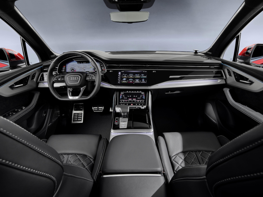 Kijk je naar de voorkant, dan zie je een gewijzigde grille, een nieuwe bumperindeling bij de mistlampen en (optionele) Matrix LED-lampen met lasersysteem. Aan de achterkant is een chromen strip tussen de beide achterlichten geplaatst. Hierdoor krijgen de achterlichten een gewijzigde vorm. Het S-line exterieurpakket is optioneel. Standaard is de Audi Q7 voorzien van 19-inch wielen. Binnenin is er veel veranderd, maar de indeling is te herkennen aan onder meer de Q8 en A6. Er zijn drie beeldschermen te vinden: eentje achter het stuurwiel en twee boven elkaar in de middenconsole.