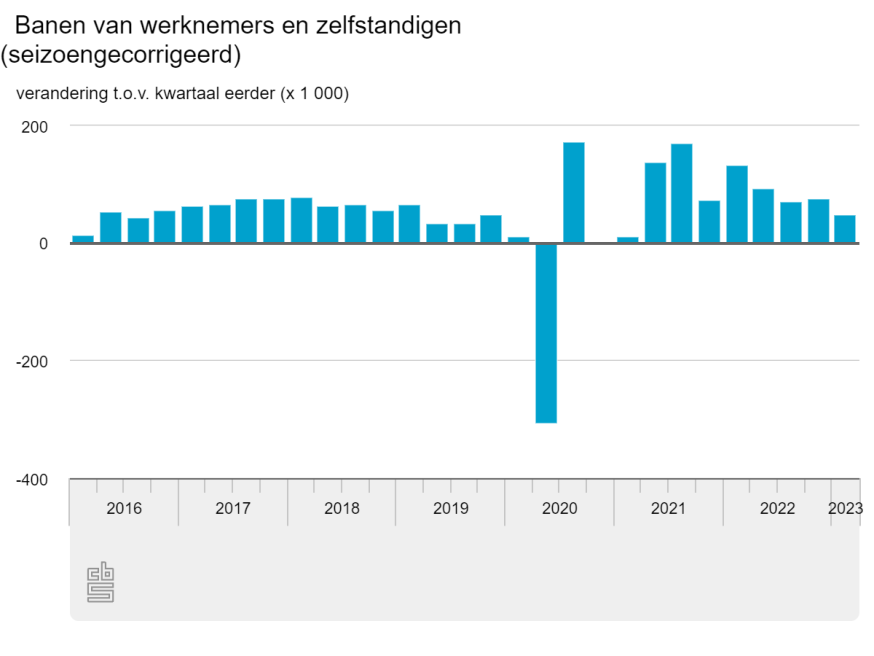 Aantal banen groeit met 49 duizend in eerste kwartaal 2023