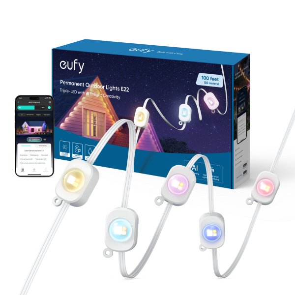 Daarnaast kondigde eufy de Permanent Outdoor Lights E22 aan tijdens IFA. De Permanent Outdoor Lights E22 bevat triple-LED met WonderShine-technologie die 16 miljoen kleuren RGB) mengt met warm en koel wit voor nog heldere, nauwkeurige en levendige kleuren. De lichtstrip biedt tot drie keer meer helderheid in vergelijking met andere RGB-verlichting en je stelt hem zelf in om de perfecte sfeer te creëren. De prijs van de Permanent Outdoor Lights E22 is € 169,99 voor 15 meter en € 249,99 voor 30 meter.