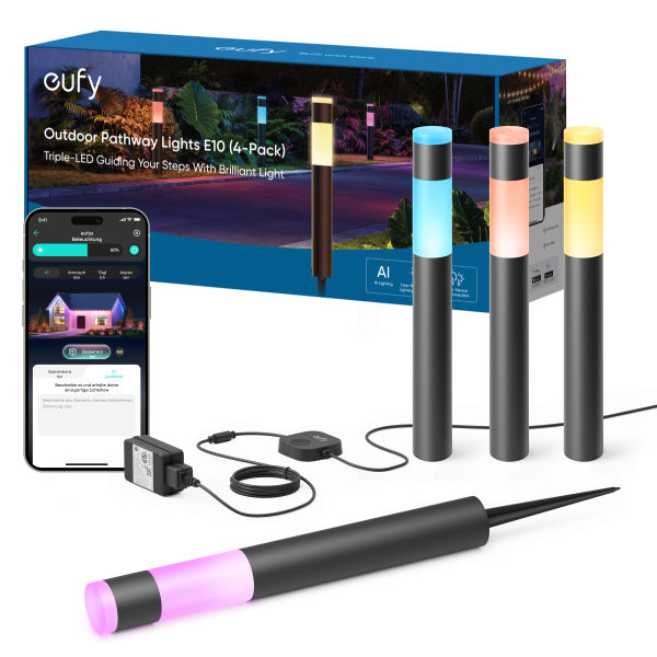 Heb je paden in je tuin die je wilt verlichten om te zien waar je loopt of wil je extra diepte creëren in je tuin? De eufy Outdoor Pathway Lights E10 heeft RGBWW-technologie voor levendige RGB en LED’s die je kunt aanpassen van warm tot koel wit, met een helderheid tot 350 lumen. De matte afwerking zorgt ervoor dat het licht gelijkmatig verspreid wordt. Deze IP65 weerbestendige verlichting is gemaakt van sterke onderdelen en hoogwaardig aluminium, zijn bestand tegen de elementen en werken betrouwbaar van -20°C tot 60°C, en gaan meer dan 50.000 uur mee. De eufy Outdoor Pathway lights E10 zijn € 149,99 en komen in een 4-pack. Ook hier kies je met de eufy Life App uit meer dan 80 vooraf ingestelde thema's en koppel je de lichten eenvoudig met Alexa of Google Assistant voor handige stembediening.