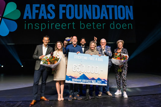 Zojuist is Stichting Free a Girl bij ‘Het Goedste Doel van Nederland’ van de AFAS Foundation uitgeroepen tot het Goedste Doel van 2021. Van de vier genomineerden heeft deze stichting de meeste publieksstemmen gekregen. Free a Girl is beloond voor het onuitputtelijke werk dat zij doet voor het bevrijden van kinderen uit situaties van seksuele uitbuiting en de aanpak van straffeloosheid in Laos. Free a Girl kreeg van de AFAS Foundation een cheque van €50.000 uitgereikt. Deze bijdrage wordt besteed aan het ontwikkelen van nieuwe technieken die online trafficking opsporen en tegengaan. De uitreiking vond plaats tijdens een feestelijke avond in het nieuwe AFAS Theater in Leusden. Het evenement had als thema ‘Dromen realiseren’ met sprekers als Laurentien van Oranje, Arjan Erkel en Gerben Eversdijk. Het Goedste Doel is hét moment voor goeddoeners om elkaar te ontmoeten, versterken en te enthousiasmeren. Voor meer informatie: www.afas.foundation