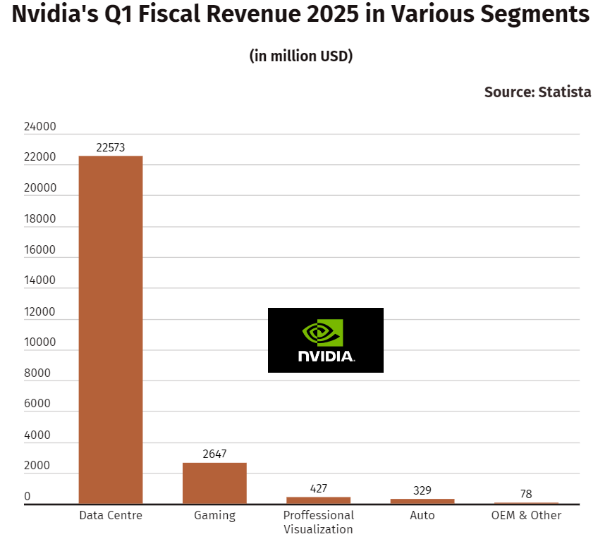De financiële prestaties van Nvidia blijven de verwachtingen overtreffen en laten een opmerkelijk groeitraject zien. Het succes is grotendeels te danken aan één dominante pijler: Nvidia's datacentersegment, dat voornamelijk de ontluikende AI-industrie bedient. Ondanks Nvidia's opmerkelijke vooruitgang in de datacentersector, blijft zijn gaming-erfenis een belangrijke bron van inkomsten. Volgens Stocklytics.com is de bijdrage van het gamingsegment echter afgenomen en vormt het nu slechts ongeveer 10 procent van de inkomsten die worden gegenereerd tussen februari en april 2024.