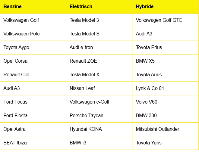 Afgelopen maand (oktober) behoorden deze occasions tot de top 10 per brandstoftype: