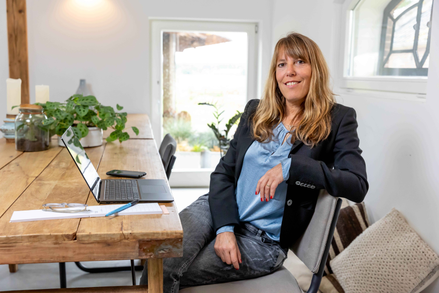 ‘Ik had al vroeg de wens om voor mezelf te beginnen. Het werken voor een baas paste niet bij mij. Daarnaast groeide de overtuiging dat het allemaal efficiënter kon. Als jonge moeder kwam ik in de knel met het 9-tot-5-principe. Ik werkte destijds in de telecombranche, reed iedere dag naar kantoor, net als alle andere collega’s. Dat vond ik zo onlogisch: we gingen met z’n allen naar kantoor en daar met elkaar mailen. Dat slaat nergens op, dacht ik. Als moeder had ik moeite met dat kader, en ik vermoedde dat ik daarin niet de enige was. Thuiswerken leek mij een ideale oplossing en zo was Moneypenny geboren.’