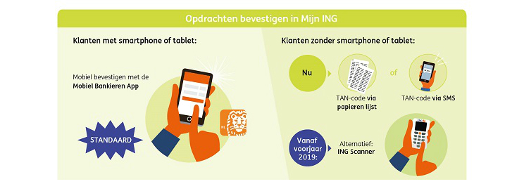 'We begrijpen dat voor een deel van onze klanten een nieuwe bevestigingsmethode een grote verandering kan zijn', vertelt Jeroen Losekoot van ING. 'Sommige klanten gebruiken al ruim 30 jaar TAN-codes. Daarom bouwen we de TAN-code stap voor stap af. De afgelopen maanden hebben we eerst bevestigen via de mobiele telefoon verder uitgerold. Voor de klanten die dit niet kunnen gebruiken, bieden we vanaf het voorjaar van 2019 de ING Scanner als alternatief voor mobiel bevestigen aan.'