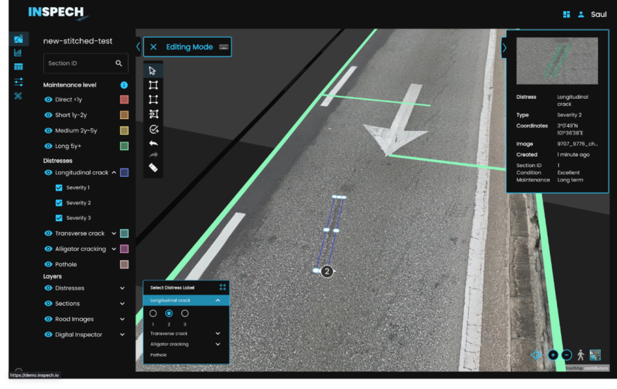 AECOM maakt gebruik van INSPECH, een digitale weginspectieoplossing met een GoPro-camera gemonteerd aan de achterkant van een voertuig, om snel hoogwaardige beelden van het wegoppervlak vast te leggen. Deze beelden worden geïntegreerd in digitale kaarten, waardoor een interactieve, geo-referenced digitale tweeling ontstaat. INSPECH versnelt inspecties aanzienlijk, waardoor inspectieteams meer kilometers wegdek kunnen inspecteren in kortere tijd, wat de productiviteit verhoogt en projecttijden verkort. Bovendien vermindert het gebruik van INSPECH vanuit het voertuig het risico op ongevallen, met name bij inspecties in gevaarlijke of drukke omgevingen. Daarnaast kan de inspecteur worden geassisteerd voor de visuele inspectie door de digitale inspector, om middels AI defecten aanbevelingen te doen waar welke defecten zich op de weg voordoen, waardoor problematische gebieden snel kunnen worden aangepakt.