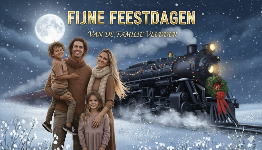 Voorbeeld hieronder laat zien hoe je een herkenbaar ‘branche-object’ (hier: transport) in wintersfeer zet. Voor B2B werkt dat i.p.v. een familie hetzelfde met jullie context (magazijn, bouwhelm, zorgbalie, etc.):