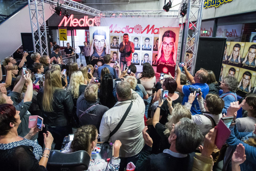 Jan Smit in Mediamarkt Apeldoorn (2016). Bron: ANP