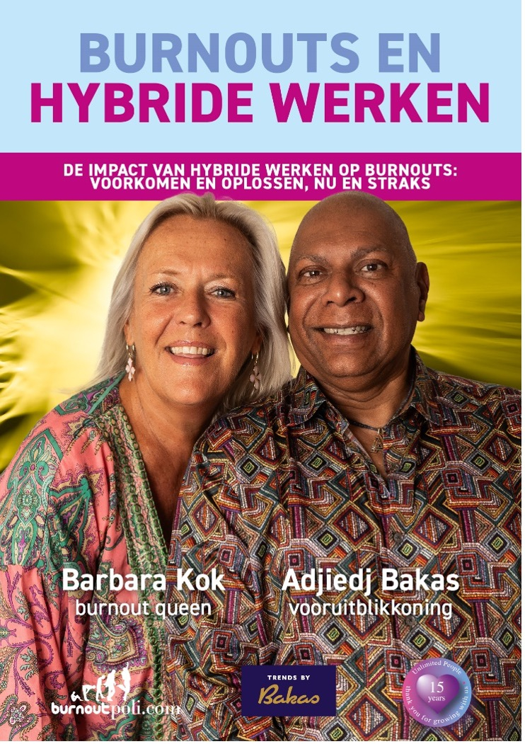 ‘Waar een groot deel van werkend Nederland tijdens de coronapandemie voor het eerst kennismaakte met thuiswerken, wordt hybride werken inmiddels breed omarmd. Bijna de helft van de Nederlanders werkt momenteel in deze vorm. Gedeeltelijk thuis en op kantoor werken heeft zijn voordelen, maar ook een keerzijde. Sinds 2020 is het aantal personen met burn-out klachten met 300.000 toegenomen van 1,3 tot 1,6 miljoen Nederlanders. Vooral de jongere generaties worden getroffen: één op de vier werknemers van 18 tot en met 34 jaar had afgelopen jaar last van burn-out gerelateerde klachten. Met het boek ‘Burnouts en Hybride Werken’ wil ik samen met co-auteur Adjiedj Bakas zowel inzicht als sturing geven om burn-outs te voorkomen en te verhelpen.’