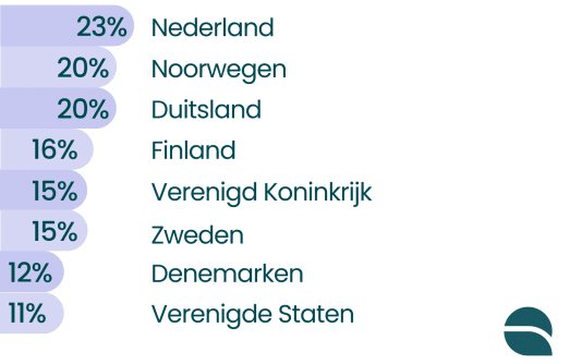 De Amerikanen staan bovenaan: 71 procent van hen beschouwt een hoger salaris als belangrijkste factor om hun betrokkenheid op het werk te vergroten. Op de tweede plaats staat Zweden met 69 procent. In Nederland ligt dit percentage het laagst, namelijk op 53 procent.
