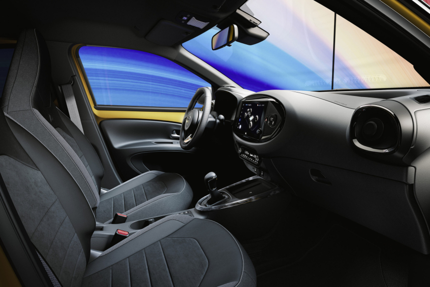 Opvallender en nog luxueuzer wordt de Aygo X als envy. Met 18-inch zwarte en gepolijste lichtmetalen velgen oogt de Aygo X nog vlotter. In het interieur wordt het 9-inch scherm voor de multimedia vervangen door een exemplaar van 10,5-inch. Voor de stoelbekleding wordt gebruikgemaakt van het nieuwe premium SakuraTouch® en de voorstoelen zijn voorzien van stoelverwarming. Met 2-zone automatische airconditioning en nanoe™ X met zuivering van de interieurlucht is het klimaat nog comfortabeler.