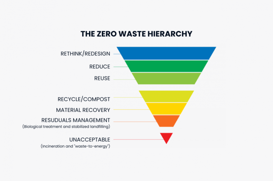 In deze hiërarchie worden opties die de overgang belemmeren, hulpbronnen verspillen of schadelijk zijn voor het milieu, als onaanvaardbaar beschouwd. Het storten van niet-gestabiliseerd afval, afvalverwijdering en verbranding zijn verouderde praktijken die in strijd zijn met de EU-doelstellingen om CO2-uitstoot te verminderen.