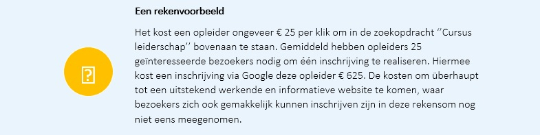 Slecht enkele opleiders kunnen hier tegenop boksen en medewerkers die zoeken via Google komen al snel bij dezelfde opleiders uit. Het gemak van Google is dus allesbehalve onafhankelijk.