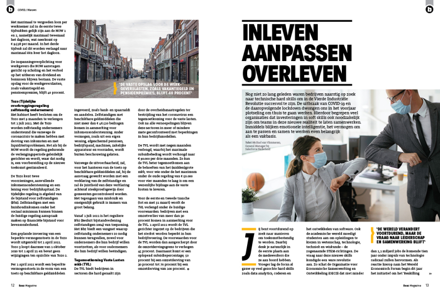 De toon blijft wat somber. En toch vinden we in deze editie een bepaalde trots. Want waar jouw omgeving en dagelijkse bezigheden nooit meer hetzelfde zullen zijn, blijft de Baaz vertrouwd. Verhalen vol uitdagingen en oplossingen staan nog altijd centraal. Ondernemerschap is dan ook weinig veranderd. Waar een crisis ook uit voortkomt: aanpassingsvermogen wordt verwacht. En passen we ons adequaat aan, dan staan we sterk.