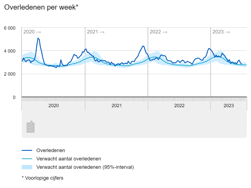 In het eerste kwartaal overleden wekelijks gemiddeld 225 meer mensen dan verwacht, en was er in de eerste twee weken oversterfte.