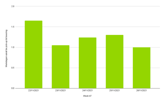 Het toenemend aantal online bestellingen rondom Sinterklaas en Black Friday levert tot dusver nog geen pakketdrukte op: er zijn nog geen noemenswaardige vertragingen te zien. Dit blijkt uit de Pakketradar: een data-analyse van transport management service Wuunder. De pakketten zijn deze week vanaf het moment van pick-up gemiddeld iets langer dan één dag onderweg naar de ontvanger, wat gelijk staat aan het gemiddelde van november.