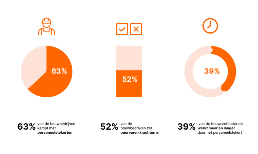 De impact van personeelstekorten raakt ook het persoonlijk leven van de werknemers. Zo geeft 39 procent van de bouwprofessionals aan dat ze vanwege het tekort zelf vaker werken en langere dagen maken. Volgens een derde (34%) zou betere opleiding en training de productiviteit ten goede komen.