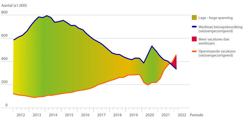 Figuur 1: openstaande vacatures en werkloze beroepsbevolking (seizoensgecorrigeerd)