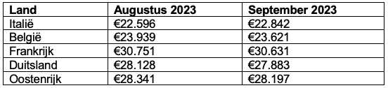Gemiddelde prijs occasions in Europa: