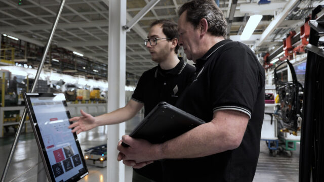 De meest ingrijpende verandering kwam bij het ontstaan van deze vijfde generatie. De Scenic E-Tech electric is immers een 100% elektrisch model, ontworpen op het specifieke AmpR Medium platform. De historische fabriek van Douai moest worden omgebouwd met het oog op dit nieuwe elektrische platform, wat een investering van 550 miljoen euro met zich meebracht. De nieuwe, flexibele assemblagelijn biedt plaats aan vier platformen voor de productie van een breed gamma auto’s. De werkposten werden gereorganiseerd om een maximale flexibiliteit te garanderen en de assemblagelijn werd opnieuw opgebouwd om de installatie van accupakketten te integreren. Deze transformatie was ook de ideale gelegenheid om de werkposten grondig te herzien. Zo werd het principe van ‘full kitting’ ingevoerd, waardoor operators alle onderdelen eenvoudig binnen handbereik hebben.