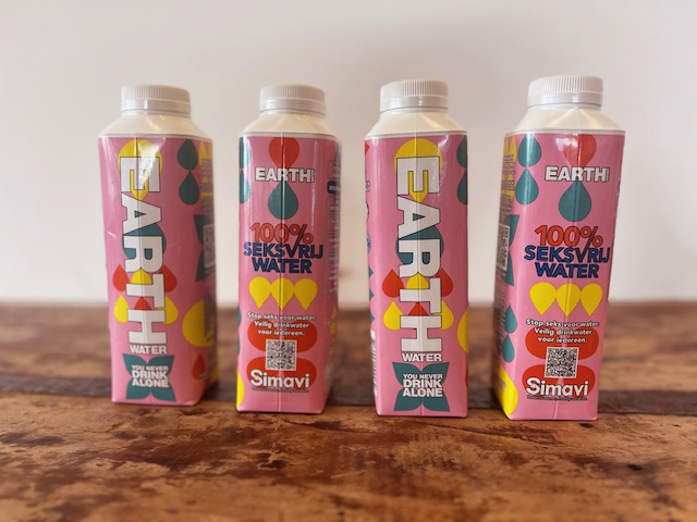 Ontwikkelingsorganisatie Simavi en sociale onderneming EARTH Water lanceren '100% Seksvrij Water. Met dit limited edition drankkarton vragen de organisaties aandacht voor de ongemakkelijke waarheid dat vrouwen en meisjes door de wereldwijde watercrisis seksueel geweld ondervinden in landen als Kenia en Bangladesh.