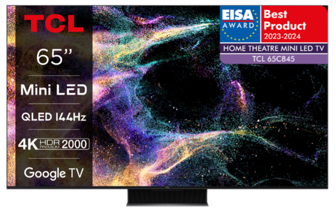 • De TCL 65C845 TV werd bekroond met de “BEST HOME THEATRE MINI LED TV 2023-2024” door EISA, vanwege zijn uitstekende audiovisuele kwaliteit en softwarefunctie, die zorgen voor uitstekende prestaties in elke denkbare gebruikerssituatie. Gebaseerd op de Mini LED- en QLED-achtergrondverlichtingstechnologie en ondersteund door AiPG 3.0-beeldkwaliteitsalgoritmen, levert de TCL C845 uitstekende prestaties op het gebied van beeldkwaliteit. En met helderheidsniveaus van 2000 nits bereikt het HDR-scherm van de C845 superieure contrasten.