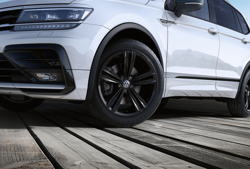 Het Tiguan Allspace R-Line Black Style exterieurpakket bevat onder meer zwarte 19 inch ‘Sebring’ lichtmetalen velgen (zwarte 20 inch Suzuka-velgen tegen meerprijs leverbaar), een zwarte R-Line-dakspoiler, zwarte dakrails, zwarte spiegelkappen en raamlijsten, donker getinte ramen achter, en een R-design bodykit met zwarte accenten.