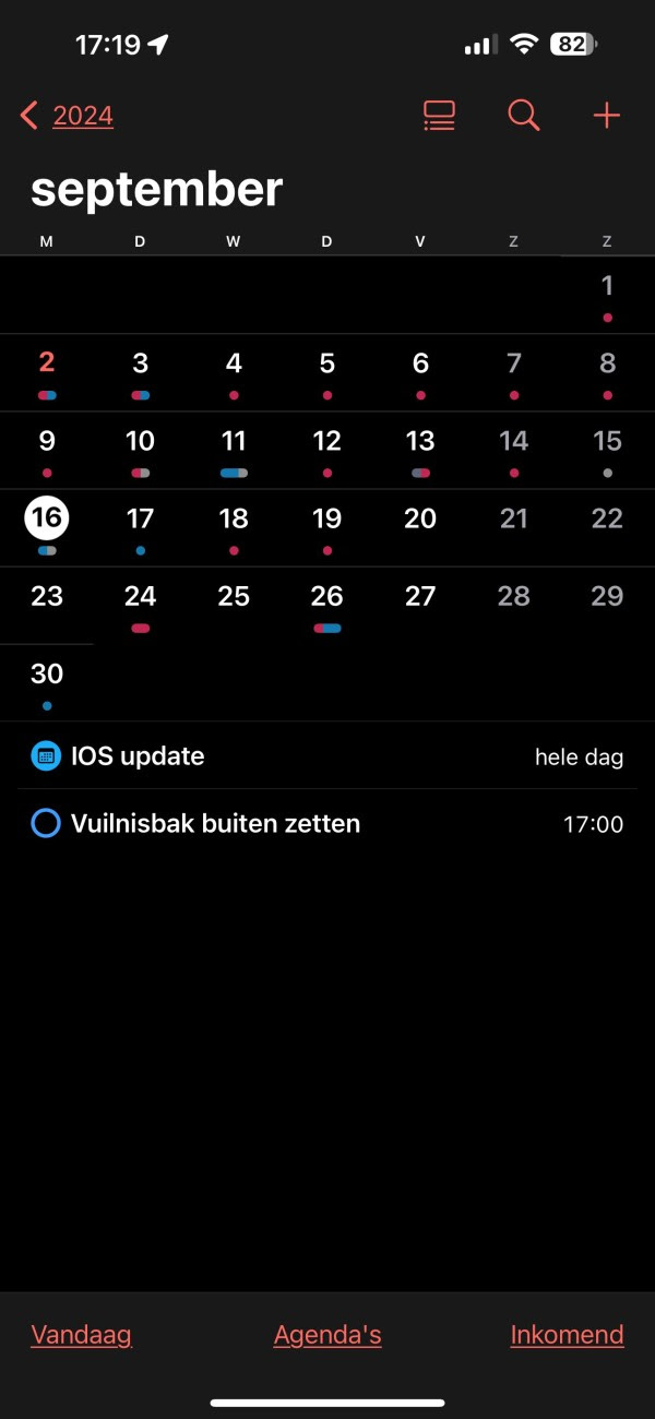 Screenshot van de Agenda app in iOS18