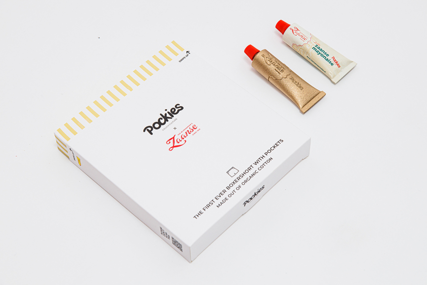 Een kledingmerk, bekend van de boxershort met zakken, dat samenwerkt met een sauzenbedrijf; op het eerste gezicht misschien niet de meest logische combinatie. Maar volgens Pockies-oprichter Michiel Dicker ligt de samenwerking voor de hand: “Wij verkopen comfort de Zaanse mayonaise is het ultieme comfortfood. Daarnaast kunnen onze klanten de tube dus mooi in de zak van hun Pockie steken zodat ze nooit meer zonder zitten.” Twee vliegen in één klap.