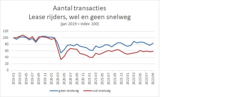 Daarnaast is het herstel van het aantal transacties na de pandemie hier hoger dan bij leaserijders. De zzp- en mkb-doelgroep zat, buiten de snelweg, in september 2022 op 110 procent van het aantal transacties van januari 2019. Roozeman vervolgt: “Leaserijders ‘scoren’ daar slechts 80 procent. Op de snelweg zitten zzp’ers en mkb’ers op 80 procent van het aantal transacties, waar leaserijders op 60 procent zitten. Ook bij de zzp- en mkb-doelgroep zien we uit de data dat de voorkeur voor de tanklocatie verschuift; weg van de snelweg dus.”